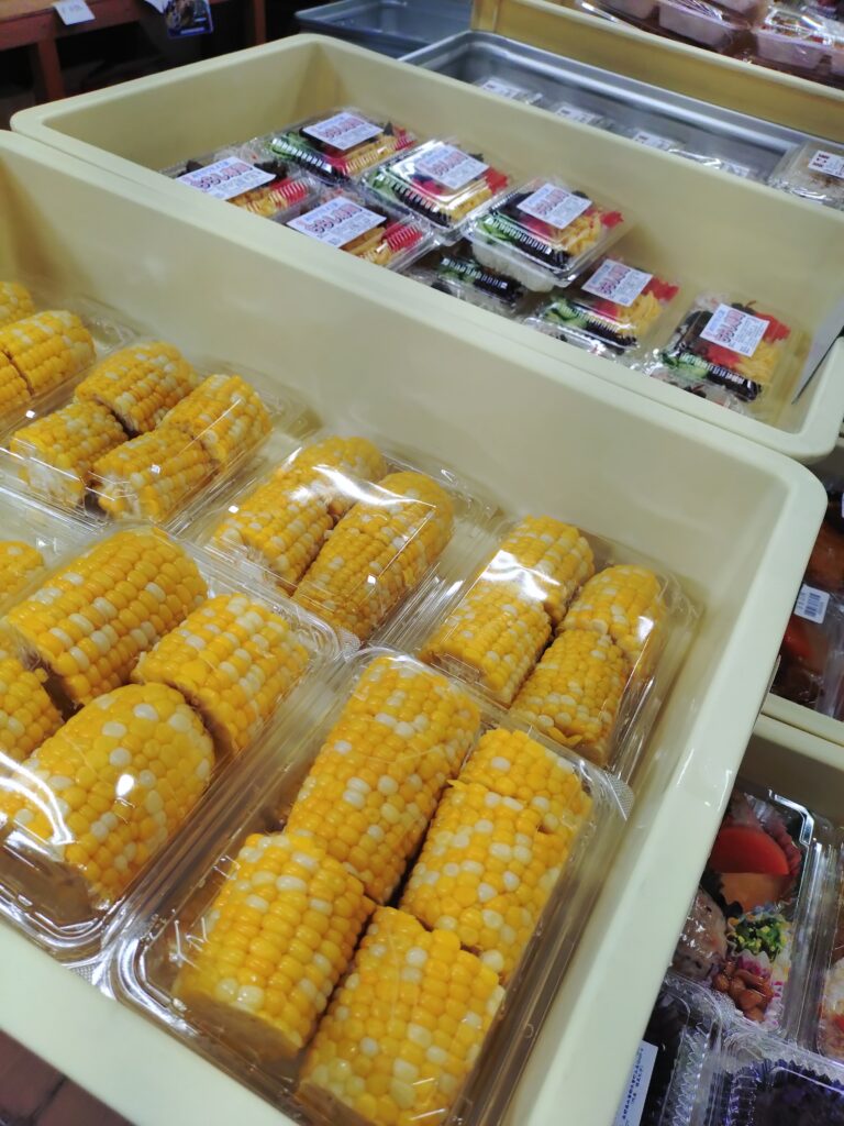 また、お弁当や総菜類も、「とうもろこし」や「茹でクリ」など、季節ならではの品をご購入いただけます。